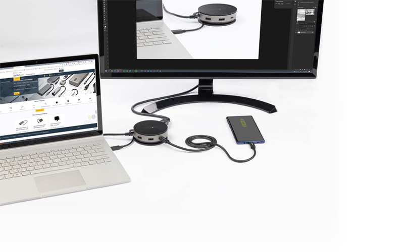 Turn your device into a workstation, anywhere you go. Multiport adapters offer productivity features, including multiple monitors and additional port options, while adding the benefits of portability and flexibility, making them an ideal solution for hybrid working.