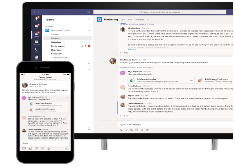 Microsoft Teams provides a shared workspace that enables teams to communicate with ease through chats - across geographies, languages and organisational boundaries. Additionally, access to common tools and office apps that people use every day—Word, Excel, PowerPoint, OneNote, SharePoint, Planner, even Power BI—are built-in, allowing employees to view files and utilise the tools they need right within the platform.